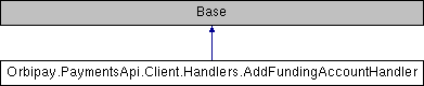 Inheritance diagram for Orbipay.PaymentsApi.Client.Handlers.AddFundingAccountHandler: