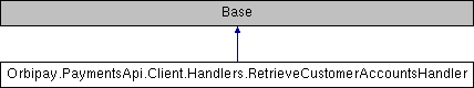 Inheritance diagram for Orbipay.PaymentsApi.Client.Handlers.RetrieveCustomerAccountsHandler: