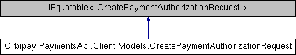 | Orbipay.PaymentsApi.Client.Models.CreatePaymentAuthorizationRequest.CreatePaymentAuthorizationRequest |