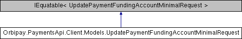 | Orbipay.PaymentsApi.Client.Models.UpdatePaymentFundingAccountMinimalRequest.UpdatePaymentFundingAccountMinimalRequest |